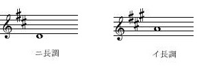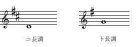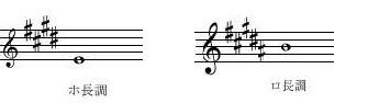 - 一番良く使われる属調転調=5度高い調への転調(シャープを1つ増やす転調)を例としてあげてみます。ハ長調(主音ド)からト長調(主音ソ)のような転調です。これはホ長調(主音ミ)からロ長調(主音シ)(図4)への転調、変ホ長調(主音ミ♭)から変ロ長調(主音シ♭)(図5)と同じものだと考えます。(ドレミファソ、ミファソラシのように数えて、5番目の音に主音を変えます)
