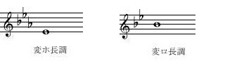 変ロ長調(♭2つの調)は、ヘ長調(♭1つの調)になります。 - ♭が1つ増える場合。